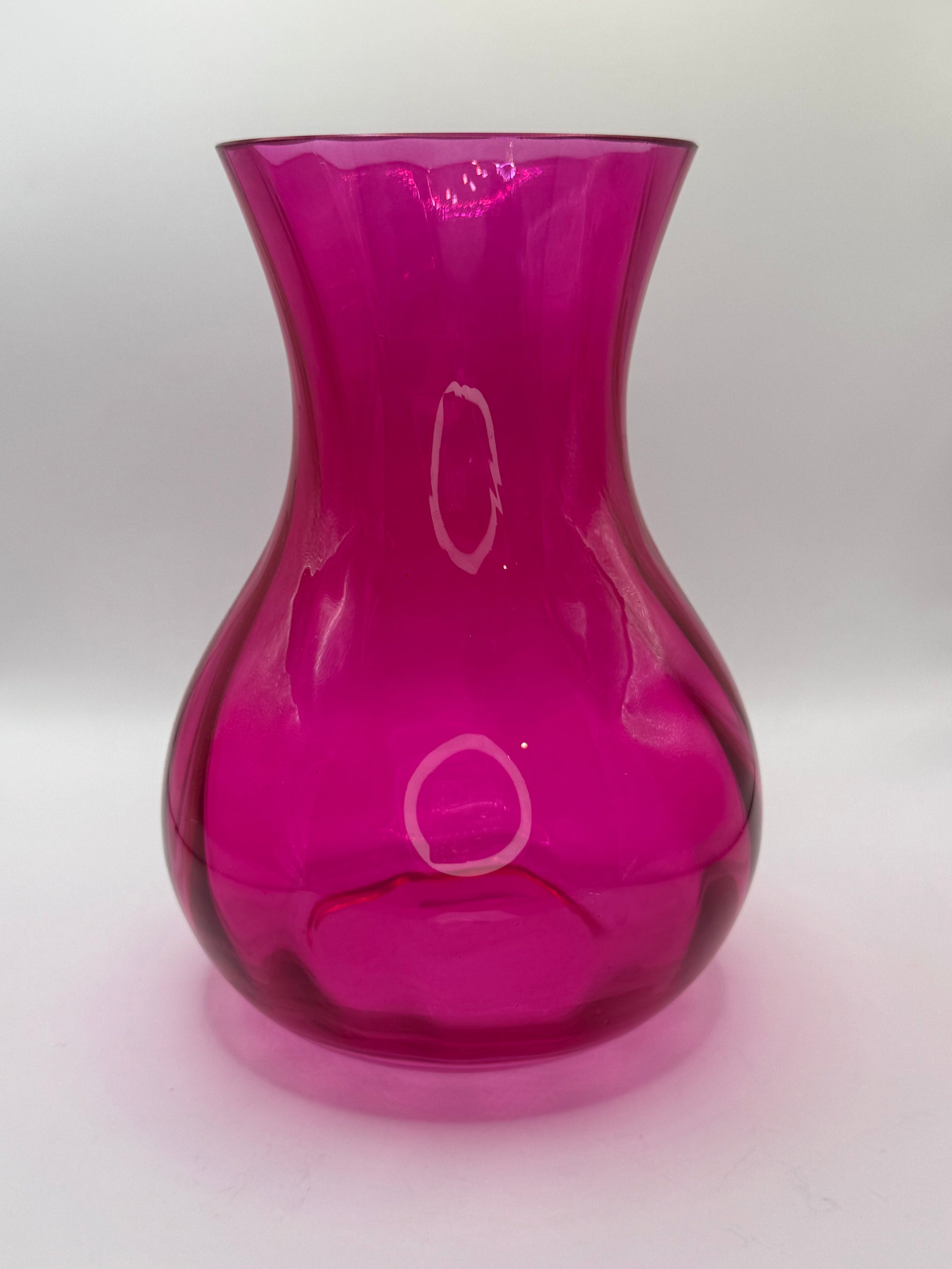 Make a bold statement with Fuchsia Flame, a hand-blown art glass vase in a stunning jewel-toned pink. This curvy silhouette with a tapered neck is as sensual as it is sophisticated—ideal for fresh blooms, dried botanicals, or simply displayed as a sculptural piece of modern elegance.